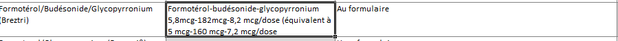 Au Canada, la formulation dispo est le 182-8,2-5.8 et correspond à la dose mesurée à l'actionnement de l'inhalateur. Aux USA, on présente la dose libérée à l'embout buccal, qui est moindre donc le 182 = 160 à l'embout buccal et ainsi de suite.