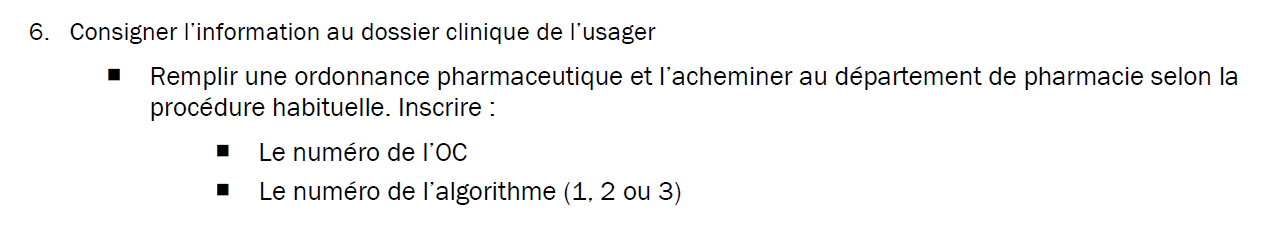 Cette nouvelle OC renferme 3 algorithmes et les infirmières douvent prescrire celle qui sera appliquée