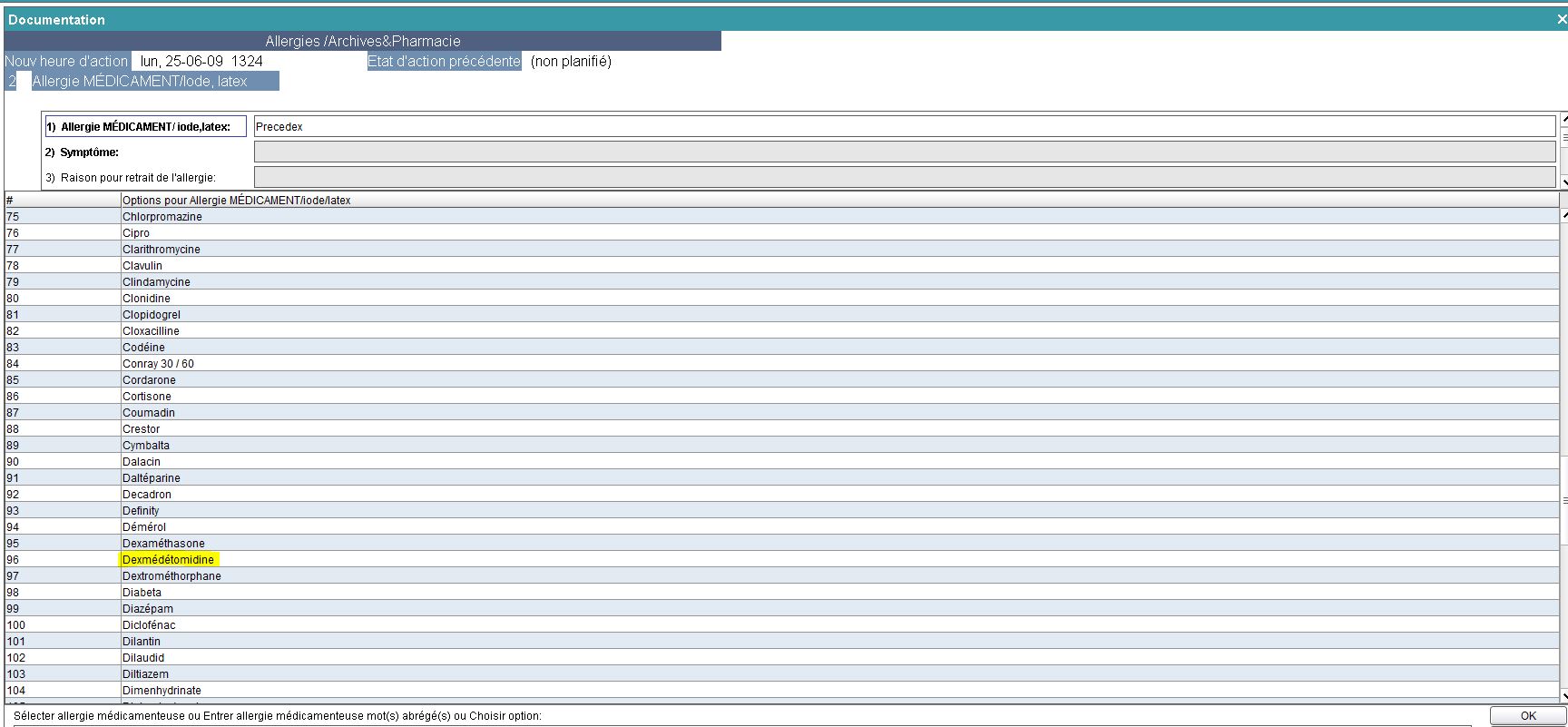 Cependant, une infirmière me mentionne qu'elle aimerait enlever le "*Precedex" et vraiment lier le DKV.