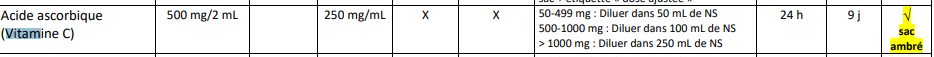 Je vais changer les doses de 0-499 mg (qui vont devenir 50-499 mg) dans 50 ml de NS en 30 minutes