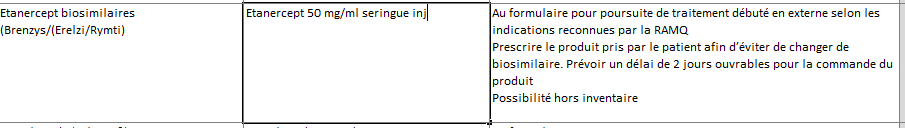 23-12-21 ML si possible les coder comme pour l'adalimumab avec un seul choix de générique mais les choix des noms de molécules obligatoire dans les instructions.