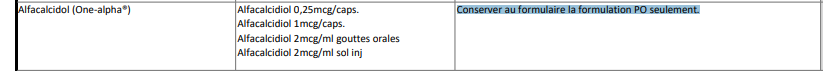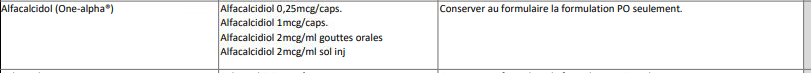 @Myriam Breton je viens de voir que nous avons du calcitriol inj et en discutant avec Sara, c'est pas mal équivalent..ON avait ajouté le One alfa car on voulait légitimer les achats des autres installations mais ici pas trop nécessaire il semble. Mets ça sur la glace et je te reviens.
