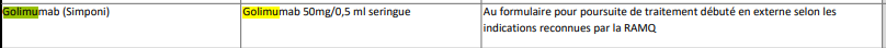ferméCoder GOLIMUMAB (SIMPONI) SC