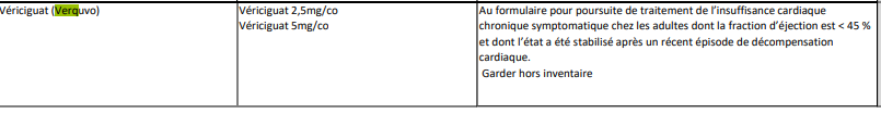 ouvertAJout VÉRICIGUAT (VERQUVO)