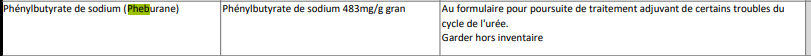 ouvertAjout PHÉNYLBUTYRATE DE SODIUM (PHEBURANE)
