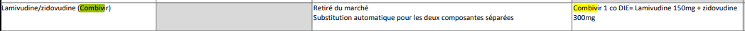 - Sujet changé de Retirer Lamivudine/Zidovudine (COMBIVIR) à Retirer Lamivudine/Zidovudine (COMBIVIR) + substitution automatique
