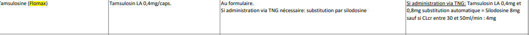 Ajouter substitution automatique pour FLOMAX par SILODOSIN SI ADMINISTRATION VIA TNG