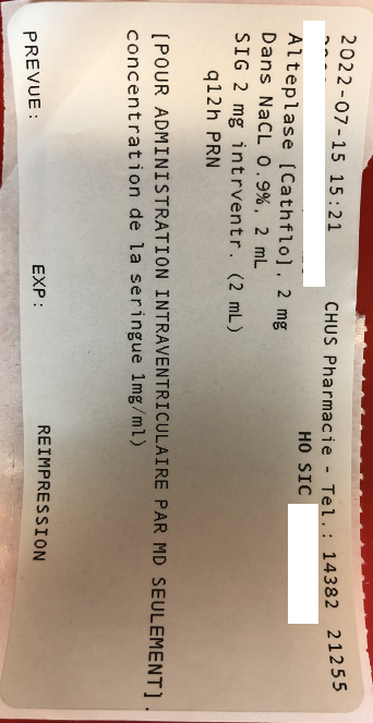 c'est 3 mL de ns et non 5 mL à discuter avec émile pour que les seringues de ns sortent d'emblées avec alteplase. Mettre dans répertoire de la pharmacie (première page???)